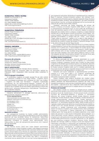 WWW.GHIDULPRIMARIILOR.RO JUDE%u021aUL MURE%u0218 / 541MUNICIPIUL T%u00c2RGU MURE%u015eAdres%u0103: P-%u021ba Victoriei, nr. 3; Cod po%u0219tal: 540026Telefon: 0265-268330; Fax: 0265-266963, 264830; Adresa de e-mail: primaria@tirgumures.roURL: www.tirgumures.roMUNICIPIUL T%u00c2RN%u0102VENIAdres%u0103: Pia%u0163a Prim%u0103riei, nr. 7Cod po%u0219tal: 545600Telefon: 0265-443400;Fax: 0265-446312; Adresa de e-mail: office@primariatarnaveni.rotirnaveni@cjmures.roURL: www.primariatarnaveni.roORA%u0218UL UNGHENIAdres%u0103: Principal%u0103, nr. 357Cod po%u0219tal: 547605Telefon: 0265-328212; Fax: 0265-328112; Adresa de e-mail: ungheni@cjmures.roURL: https://www.primariaungheni.ro/Persoane din primarie:Primar: Victor ProdanViceprimar: Daniel Florian RaduSecretar General: Daniela Ionela CovrigContabil: Avram FlorianSate %u00een administra%u021bie:%u015e%u0103u%u015fa, Cerghid, Cerghizel, More%u015fti, Recea, Vidras%u0103uSuprafa%u021ba:%u00a0 6369 ha; Intravilan:%u00a0 966,1 ha; Extravilan:%u00a0 5402,9 ha; Popula%u021bia:%u00a0 7007; Gospod%u0103rii:%u00a0 2193; Locuin%u021be:%u00a0 2254; Gr%u0103dini%u021be:%u00a0 5; %u0218coli:%u00a05; Cum se ajunge in localitate:%u00cen localitatea Ungheni se poate ajunge fie pe cale rutier%u0103 prin utilizarea E 60/DN 15 ruta T%u00e2rgu Mure%u0219 - Ungheni, drum care tranziteaz%u0103 localitatea, prin utilizarea DJ 151D ruta Ac%u0103%u021bari %u2013 Ungheni, DJ 151B ruta T%u00e2rn%u0103veni %u2013 Ungheni. Autostrada Transilvania, DL 124 Nazna-%u0218%u0103u%u0219a-Vidras%u0103u- Ungheni, DL 125 S%u00e2ntioana-More%u0219ti- Ungheni, fie pe cale feroviar%u0103 prin Gara CFR Ungheni sau a haltelor de pe raza satelor apar%u021bin%u0103toare, fie pe cale aerian%u0103 prin utilizarea Aeroportului Interna%u021bional %u201dTransilvania%u201d din localitatea Vidras%u0103uActivitati economice si specifice zonei:Industria alimentar%u0103, IT, energie electric%u0103, electronice %u0219i electrocasnice, industrie u%u0219oar%u0103, etc.Firme reprezentative:Fabrica de bere S.C.Heineken SRLDepozit carburan%u021bi S.C.Premaco S.A.S.C.Ceragrim S.R.L.S.C.Transiltex S.R.L.CONEL S.C.Electrica S.A.S.C.ZASS Romania S.R.L.S.C.Farotec S.R.L.S.C.Nett Front S.R.L. etc..Obiective turistice:Din perspectiv%u0103 turistic%u0103, la nivelul unit%u0103%u021bii administrativ teritoriale Ungheni ne bucur%u0103m de segmentul turismului religios practicat pe raza localit%u0103%u021bii Recea, la m%u0103n%u0103stirea %u201dAdormirea Maicii Domnului%u201d. %u00cen acest sens observ%u0103m o cre%u0219tere a interesului pelerinilor ortodoc%u0219i %u00een aceast%u0103 zon%u0103 administrat%u0103, lucru %u00eembucur%u0103tor nu doar din perspectiv%u0103 economic%u0103, c%u00e2t %u00een special din cea spiritual%u0103.Evenimente:Din fericire atunci c%u00e2nd vine vorba despre evenimente marcante pentru ora%u0219ul Ungheni, putem vorbi despre momente festive speciale cu prilejul fiec%u0103rei zile na%u021bionale s%u0103rb%u0103torite, astfel putem aminti faptul c%u0103 %u00een fiecare an organiz%u0103m ceremoniale de depunere de coroane la statuia lui Avram Iancu sau la Monumentul Eroilor din ora%u0219ul Ungheni, cu prilejul Zilei Na%u021bionale a Rom%u00e2niei, Zilei Unirii, Zilei Imnului, Zilei Eroilor sau celei a Tricolorului, momente care au devenit din ce %u00een ce mai frumos reprezentate %u0219i prin prezen%u021ba institu%u021biilor de for%u021b%u0103 prin reprezentan%u021bii lor, respectiv Baza 71 Aerian%u0103 %u201dGeneral Emanoil Ionescu%u201d din C%u00e2mpia Turzi, Comandamentul For%u021belor pentru Opera%u021bii Speciale T%u00e2rgu Mure%u0219 %u0219i Academia For%u021belor Terestre %u201dNicolae B%u0103lcescu%u201d din Sibiu, parteneri extraordinari care fac ca fiecare s%u0103rb%u0103toare s%u0103 fie %u00eencununat%u0103 de aplauze din partea comunit%u0103%u021bii noastre.Totodat%u0103, meciurile de fotbal disputate de echipa de fotbal a ora%u0219ului C.S.Unirea Ungheni 2018 aflat%u0103 %u00een Liga a II-a a Campionatului Rom%u00e2niei sunt un bun prilej de socializare %u0219i chiar de spectacol sportiv, la fel %u0219i meciurile copiilor %u0219i juniorilor disputate pe acela%u0219i teren a ora%u0219ului Ungheni, %u00een baza s%u0103ortiv%u0103 More%u0219ti sau %u00een sala de sport a %u0218colii Gimnaziale %u201dEmil Dr%u0103gan%u201d din ora%u0219ul Ungheni. Tot pentru copii %u0219i familie organiz%u0103m momente speciale prichindeilor cu prilejul zilei de 1 Iunie %u2013 anul acesta %u201dCopiii, pilo%u021bi ai viitorului! %u2013 edi%u021bia a II-a%u201d a adus %u00een fa%u021ba elevilor %u0219i pre%u0219colarilor elicoptere militare, blindate %u0219i echipament militar, prezentat de aviatorii militari de la Baza 71 Aerian%u0103 C%u00e2mpia Turzii %u0219i de c%u0103tre militarii de la FOS T%u00e2rgu Mure%u0219! %u0218i cu prilejul Zilelor Por%u021bilor Deschise de la C.S.Unirea Ungheni 2018 pe Stadionul %u201dCentral%u201d din ora%u0219 ne bucur%u0103m al%u0103turi de locuitorii ora%u0219ului, iar %u00een ultimii ani, o nou%u0103 tradi%u021bie am putea spune, este organizarea competi%u021biilor sportive sub titulatura %u201eCUPA UNIRII%u201d, at%u00e2t la fotbal, c%u00e2t %u0219i la box. Acestea atrag spectatori iubitori de sport de toate v%u00e2rstele %u0219i din toate z%u0103rile jude%u021bului nostru %u0219i chiar mai departe de at%u00e2t, fie pe terenul sintetic, cel natural, fie la sala de sport a %u0218colii Gimnaziale %u201dEmil Dr%u0103gan%u201d Ungheni!Facilit%u00e3%u0163i oferite investitorilor:%u00cen ultima perioad%u0103 de timp, datorit%u0103 deschiderii %u0219i a unei viziuni comune ale Consiliului Local Ungheni %u0219i a primarului ora%u0219ului Ungheni, investitori rom%u00e2ni dar %u0219i str%u0103ini au ales ora%u0219ul Ungheni %u0219i localit%u0103%u021bile apar%u021bin%u0103toare pentru a %u00ee%u0219i dezvolta afacerile deja existente sau pentru a ini%u021bia noi proiecte. Mediul de afaceri la nivelul ora%u0219ului Ungheni este unul %u00een cre%u0219tere, generator de
