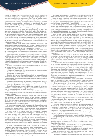 584 / JUDE%u021aUL PRAHOVA WWW.GHIDULPRIMARIILOR.RO%u015fi sig%u0103, cu pere%u0163i gro%u015fi cu l%u0103%u0163imi %u00eentre 40 cm %u015fi 1 m. Construc%u0163ia bisericii la %u00eenceput, a avut forma unui poligon dreptunghiular, cu anvon %u00een fa%u0163%u0103. Anvonul era sus%u0163inut de st%u0203lpi de piatr%u0103 cioplit%u0103. Catapeteasma f%u0103cut%u0103 din piatr%u0103 se p%u0103streaz%u0103 %u015fi ast%u0103zi, tot asa cum a fost la %u00eenceput. Turla din mijloc a fost din zid; %u00een 1812 s-a d%u0103r%u0203mat din cauza cutremurului %u015fi s-a %u00eenlocuit cu o alt%u0103 turl%u0103 din lemn; %u00een ea a fost a%u015fezat clopotul %u015fi toaca p%u0203n%u0103 %u00een anul 1913, c%u0203nd s-a construit clopotni%u0163a.La 1848, s-au adus %u00eembun%u0103t%u0103%u0163iri prin prelungirea anvonului %u00een corpul bisericii, iar %u00een anul 1877, s-a l%u0103rgit cu 10 m.p., prin spargerea pere%u0163ilor str%u0103nilor din ambele p%u0103r%u0163i, form%u0203ndu-se 2 s%u0203nuri %u00een form%u0103 de curb%u0103; toate aceste opera%u0163ii au fost efectuate cu sprijinul lui Ilie Ciacorovitz %u015fi prin st%u0103ruin%u0163a c%u0203nt%u0103re%u0163ului Ghi%u0163%u0103 A. Morcov, ajut%u0203nd astfel la restaurarea picturii sf%u0203ntului l%u0103ca%u015f. Tot el a achizi%u0163ionat icoanele %u00eemp%u0103r%u0103te%u015fti de la catapeteasm%u0103, d%u0103ruind totodat%u0103 %u015fi o evanghelie %u00eembr%u0103cat%u0103 %u00een argint, o cruce de argint suflat%u0103 cu aur %u015fi pentru sf%u0203nta mas%u0103 o cuvertur%u0103 de m%u0103tase precum %u015fi altele.Biserica figureaz%u0103 pe listele monumentelor istorice %u015fi a fost ctitorit%u0103 de Ani%u0163a %u015fi so%u0163ul acesteia Iani, v%u0103taful Plaiului Teleajen, %u00een anul 1744. Din punct de vedere arhitectonic, are la origine un plan tip hal%u0103 f%u0103r%u0103 abside laterale care s-au ad%u0103ugat ulterior.Acest l%u0103c%u0103%u015f sf%u00e2nt reprezint%u0103 una dintre cele mai vechi tipuri de biseric%u0103 ridicate de mo%u015fneni cu boltire de c%u0103r%u0103mid%u0103 care s-a p%u0103strat p%u0203n%u0103 %u00een prezent.Monumentul din Homor%u00e2ciu %u00eenchinat Eroilor din Homor%u00e2ciu, Schiule%u015fti, Cerne%u015fti, Malu V%u00e2n%u0103t din primul r%u0203zboi mondial 1916 %u2013 1919 %u015fi al doilea, 1941 %u2013 1944; acesta a fost ridicat, %u00een anul 1924, %u00een centrul satului, pe atunci c%u0203tunul Homor%u0203ciu %u2013 P%u0103m%u0203nteni, %u00een mica pia%u0163%u0103 unde se face bifurca%u0163ia drumurilor care pleac%u0103 spre Sl%u0103nic %u2013 Prahova %u015fi Schiule%u015fti %u2013 Schitul Crasa, %u015fi al doilea spre Cheia.Numele eroilor c%u0103zu%u0163i sunt scrise pe fiecare fa%u0163ad%u0103, %u00een func%u0163ie de b%u0103t%u0103lia pe care au purtat-o, astfel:Fa%u0163ada sud, 1924, M%u0103r%u0103%u015fti;Fa%u0163ada est, Vou%u0103 eroilor din Homor%u00e2ciu, 1916 %u2013 1919, M%u0103r%u0103%u015fe%u015fti;Fa%u0163ada nord, 1941 %u2013 1944, Oituz;Fa%u0163ada vest, Dragoslavele.Biserica de Lemn, din satul Schiule%u015fti, ce poart%u0103 hramul %u201cSf%u00e2ntul%u00a0 Nicolae%u201d, este atestat%u0103 documentar %u00een 1833 pe mo%u015fia mo%u015fneneasc%u0103. A fost ref%u0103cut%u0103 %u00een 1842, efectu%u0203ndu-se lucr%u0103ri la structura de zidire.%u00cen ceea ce prive%u015fte preo%u0163ii de la Biserica din Schiule%u015fti, din lips%u0103 de documente, nu avem date, la acest loca%u015f, oficiindu-se slujbe cu preo%u0163i sau c%u0103lug%u0103ri din alte localit%u0103%u0163i.Spre sf%u00e2r%u015fitul anului trecut, %u00een 2010, s-a %u00eenceput la renovarea acesteia, a acoperi%u015fului dar %u015fi a gardului, iar lucr%u0103rile continu%u0103 %u015fi %u00een ziua de azi, cu siguran%u0163%u0103 din lipsa fondurilor.Sf%u00e2nta M%u0103n%u0103stire Crasna - monument istoric %u015fi de arhitectur%u0103 situat %u00eentr-un cadru natural minunat pe cursul superior al p%u00e2r%u00e2ului Crasna, %u00een p%u0103durePe %u0219oseaua na%u021bional%u0103%u00a0 Ploie%u0219ti %u2013 Bra%u0219ov prin pasul Bratocea, la o dep%u0103rtare de 42 km de Ploie%u0219ti se afl%u0103%u00a0 Comuna Izvoarele. Locuitorii acestei comune, ca de altfel to%u021bi locuitorii satelor din %u021a%u0103rile Rom%u00e2ne, au cunoscut at%u00e2t crunta exploatare a st%u0103p%u00e2nirii otomane c%u00e2t %u0219i pe aceea a mo%u0219ierilor care i-a determinat s%u0103-%u0219i g%u0103seasc%u0103%u00a0adapost %u00een lini%u0219tea codrilor.La %u00eenceputul secolului al XIX-lea o parte din locuitorii comunei Izvoarele %u0219i-au c%u0103utat lini%u0219tea la poalele muntelui%u00a0 Ursoaia%u00a0 aflat %u00een st%u0103p%u00e2nirea lui Constantin%u00a0Potlogescu zis %u0219i%u00a0Dinu Potlogescu, alc%u0103tuind aici o a%u0219ezare omeneasc%u0103%u00a0sub numele de%u00a0Bajenari.%u00cen anul 1828 la 1 martie %u201crobii lui Dumnezeu, Chesarie schimonahul fiul lui popa Radu Potlogescu din Izvoara %u0219i cu fiul meu Nicolae%u201d, dau episcopului un testament prin care doneaz%u0103%u00a0 viitorului schit %u00eentreaga lor avere mobil%u0103%u00a0 %u0219i imobil%u0103. Donatorii spun c%u0103%u00a0 fiind%u00a0 m%u00e2na%u021bi%u00a0 de r%u00e2vna dumnezeiasc%u0103,%u00a0 au hot%u0103r%u00e2t s%u0103%u00a0 cl%u0103deasc%u0103%u00a0 un sf%u00e2nt schit pe mo%u0219ia noastr%u0103%u00a0 Izvoarele, %u00eentru cinstea %u0219i lauda Sfin%u021bilor Imp%u0103ra%u021bi %u0219i %u00eentocmai cu apostolii Constantin %u0219i Elena %u0219i al sfin%u021birii izvorului al Prea Sfintei N%u0103sc%u0103toarei de Dumnezeu.%u00cen acest amfiteatru natural izolat, cu pavaza mun%u021bilor %u0219i a p%u0103durii, cu o benefic%u0103%u00a0 expunere spre miaz%u0103noapte, %u00eentr-o mic%u0103%u00a0 poian%u0103%u00a0 situat%u0103%u00a0 la altitudinea de 750 m, pe malul st%u00e2ng al p%u00e2r%u00e2ului Crasna, %u00een muntele Ursoaia, ctitorii %u0219i me%u0219terii vremii au ridicat biserica %u00een form%u0103%u00a0de trefl%u0103, cu o singur%u0103%u00a0turl%u0103, cu
